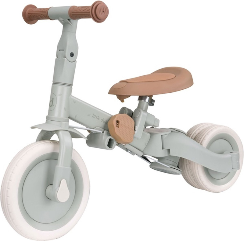 Hup, tijd om eropuit te gaan! Met deze mooie zachtgroene en bruin gedetailleerde 4-in-1 loopfiets zijn de eerste (fiets)avonturen zo gemaakt. Ideaal om spelenderwijs kennis te maken met fietsen. Kan je kleintje nog niet zelf lopen of fietsen? Geen probleem, de duwstang helpt je een handje. Veiligheid voor alles, dankzij de riem en de veiligheidsring, die gemakkelijk kunnen worden verwijderd als ze niet meer nodig zijn. Van driewieler naar loopfiets in een handomdraai - en de trappers? Die berg je slim op onder het zadel! Licht, compact en verstelbaar voor kinderen van 1 tot ongeveer 3 jaar